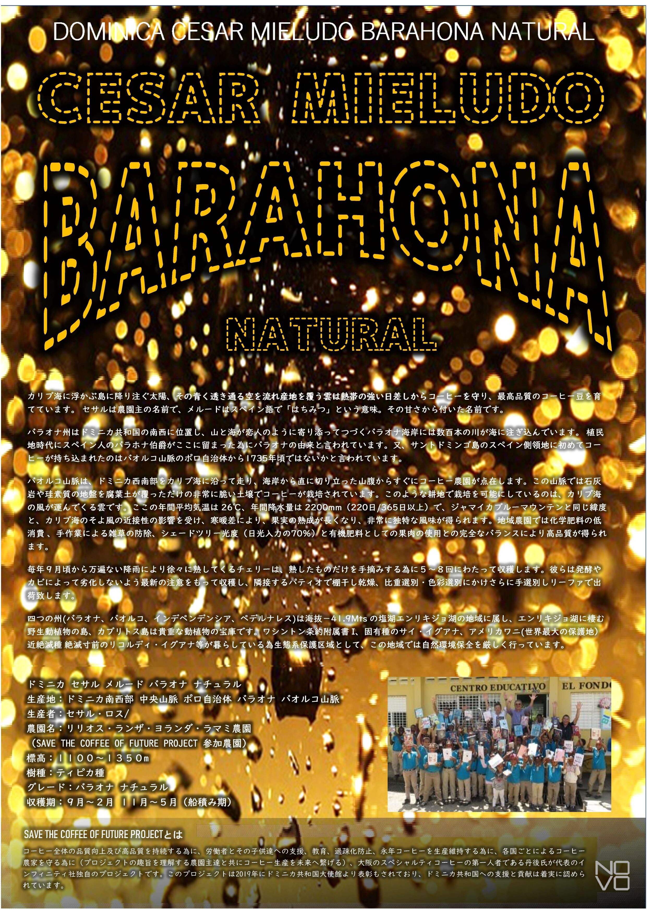 ドミニカ セサルメルード バラオナ ナチュラル 300g スペイン語で「はちみつ」【推奨焙煎度:ハイローストorフルシティロースト】
