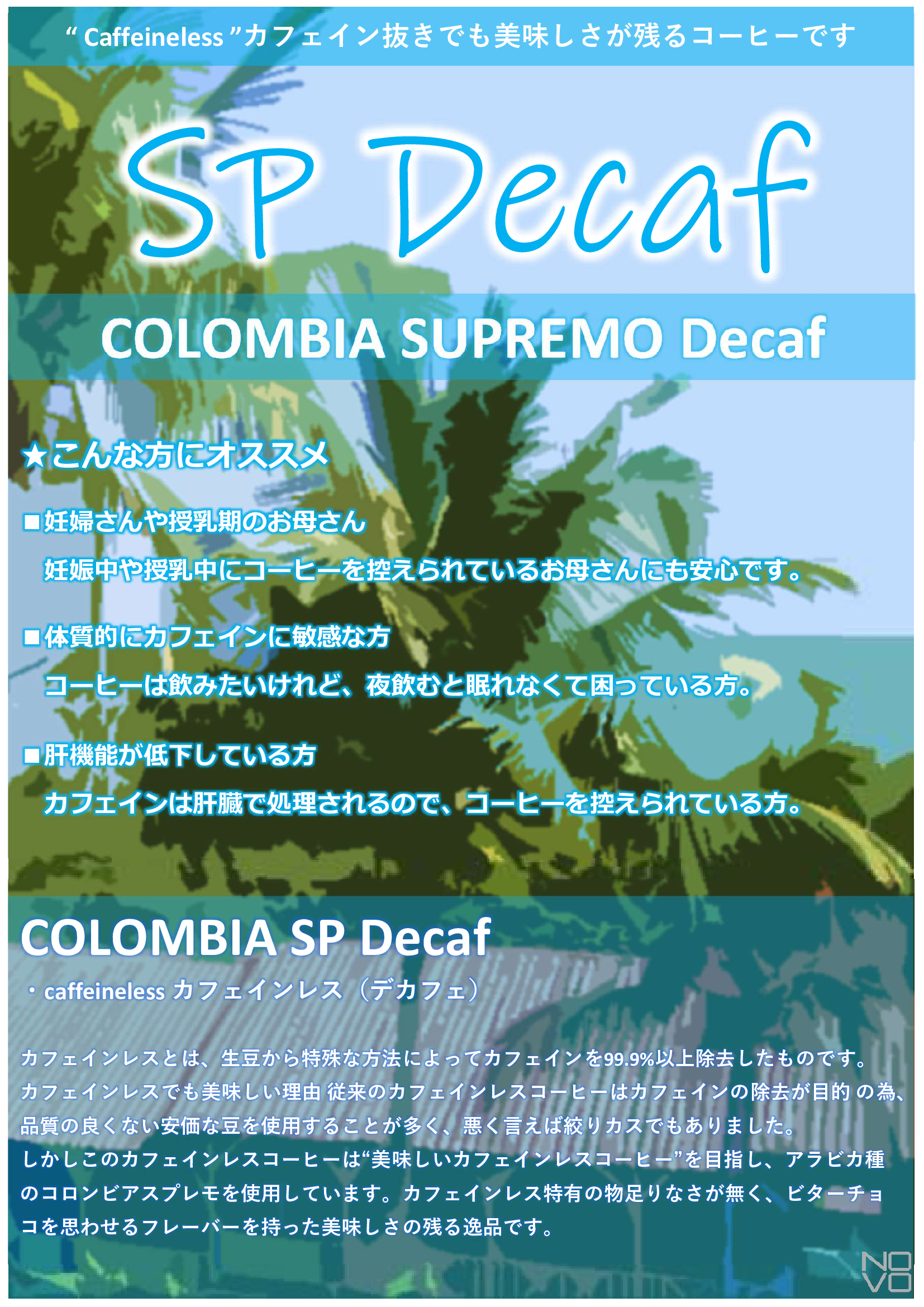 COLOMBIA SP Decafカフェインは肝臓で処理されるので、コーヒーを控えられている方。