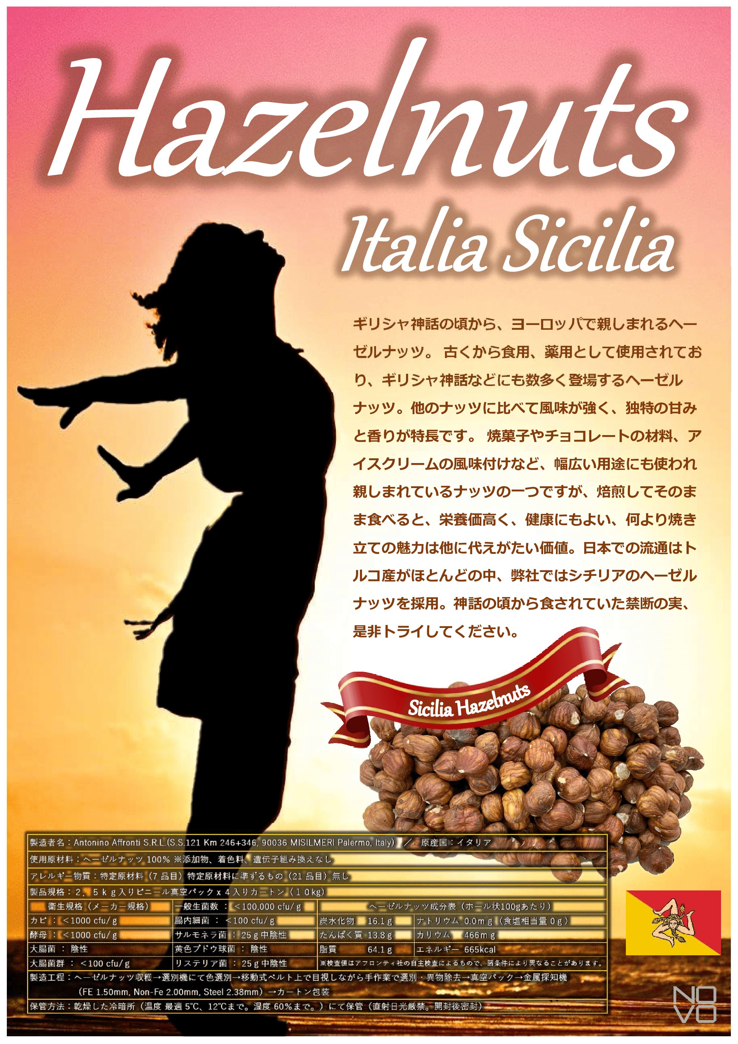 イタリア・シチリア産の焙煎ヘーゼルナッツをご紹介します。ギリシャ神話の頃から食用や薬用に使用され、今でも幅広い用途で親しまれているヘーゼルナッツ。他のナッツに比べて風味が強く、独特の甘みと香りが特徴です。